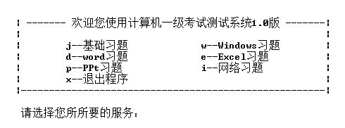 随之C语言课程的深入,授课老师将全班同学进行分组,每组完成一个独立的知识章节,再合并成覆盖所有知识点的练习测试软件。随着教学项目的推进,软件设计功能不断提升,其开发的教学软件中C语言的技术含量也逐渐提升,直到覆盖C语言课本的全部教学内容,练习测试软件的最后开发量达到12000多行。同学们通过项目参与,极大提高了的软件设计能力,完成对C语言理论和实践的学习,也送给自己一份帮助计算机等级考试过关的特殊礼物。