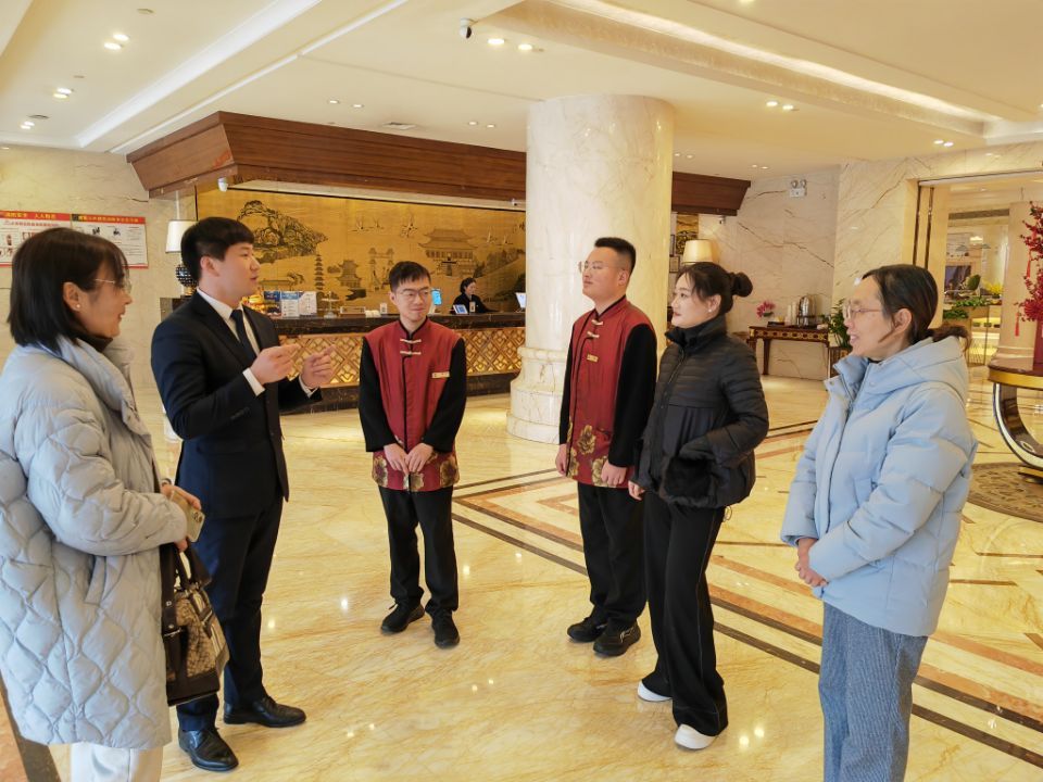 为进一步深化校企合作,了解学生实习实训情况,近日,大数据与经济管理学院院长张灵军、副院长王袁霞带领青年骨干教师孙若涵前往校企合作实训基地——明发国际大酒店,看望慰问正在酒店实习的学院学生。明发国际大酒店副总经理王坤组织酒店部门经理以及学院优秀毕业生热情接待了张灵军一行。