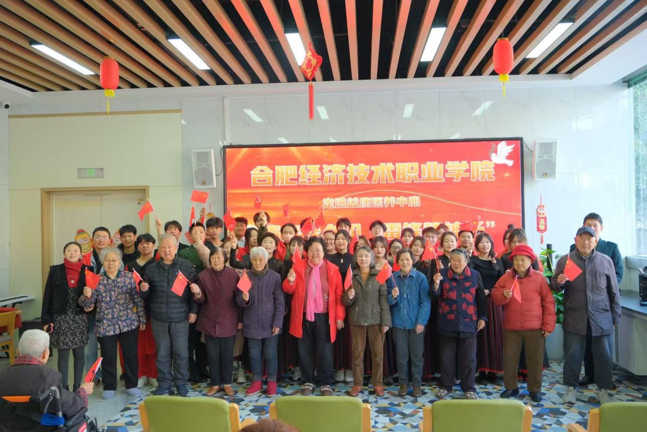 活动中,志愿者们不仅带来精彩节目,更注重与老人的情感交流。他们俯身蹲在轮椅旁,握着老人的手唠家常;手把手教老人制作“祝福千纸鹤”,彩纸在指尖翻飞成承载心意的作品。活动尾声,全体志愿者与老人挥动国旗,齐声合唱《我爱你中国》,熟悉的旋律中饱含着深深的爱国情与对老人的美好祝福。
