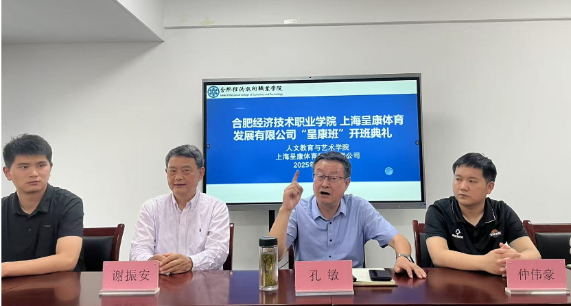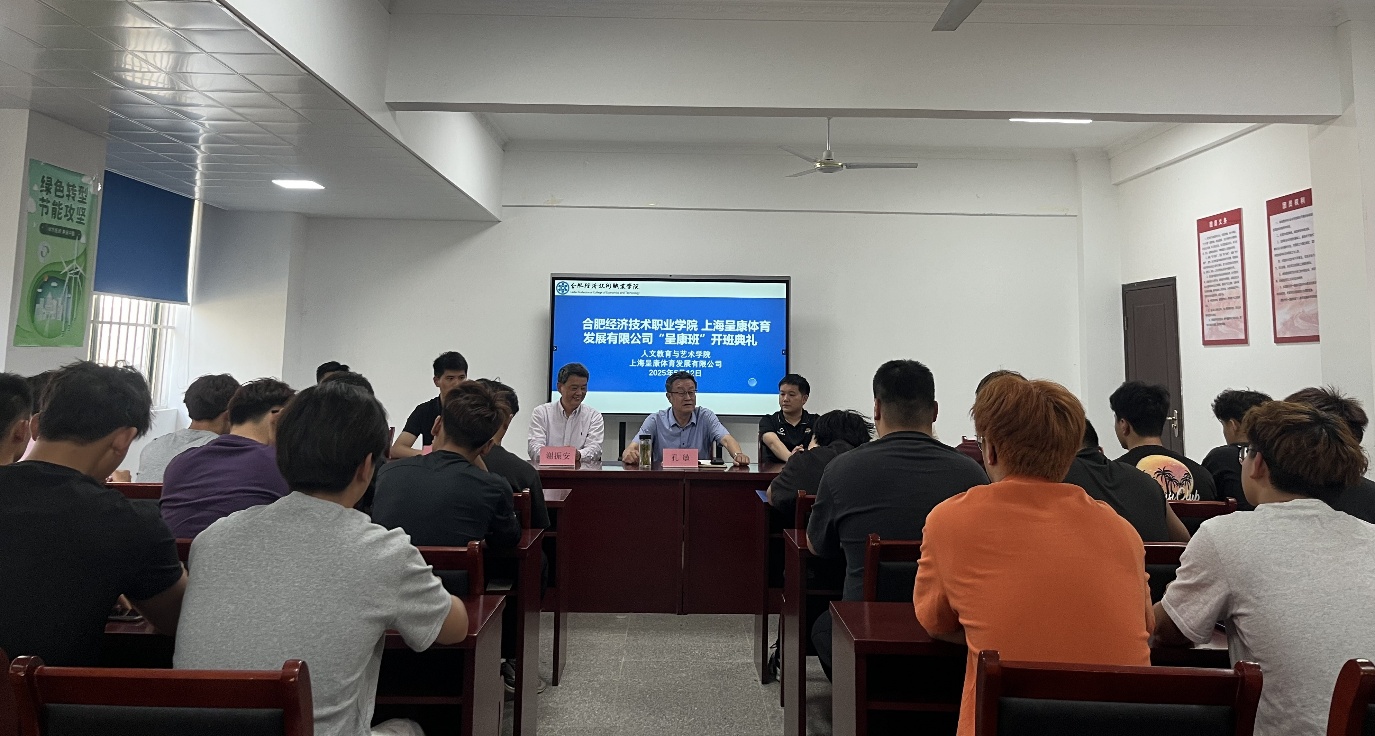 正值安徽省2025年职业教育活动周期间,5月12日下午,ac米兰官方中文网站与上海呈康体育发展有限公司合作的“呈康班”在一站式党员活动室举行开学典礼。ac米兰官方中文网站党委委员、副校长孔敏教授,人文教育与艺术学院院长谢振安、行政副院长王情情、教学副院长周晓艳、辅导员徐鑫以及“呈康班”的23名学员,上海呈康体育发展有限公司校企合作部经理仲伟豪、培训部经理王泓凯等出席本次典礼,共同见证这一重要时刻。