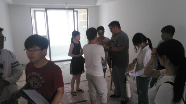 首先参观的是基本完工的华润熙云府小区一套90平的套房,设计师热情的带领同学们参观了整个户型,详细的讲解了关于这个户型设计的思路、步骤、如何与客户沟通、如何与施工人员沟通等整个过程。其次参观的是本小区刚刚施工一半的套房,客户经理金磊向大家详细介绍了关于施工材料和水电的施工工艺。最后又带领同学们参观了毛坯房现场,并组织大家按三人一组进行实际测量户型环节,在设计师的现场讲解及指导下完成了测量工作。通过此次活动,学生对室内设计的环节及施工工艺有了更深的了解。