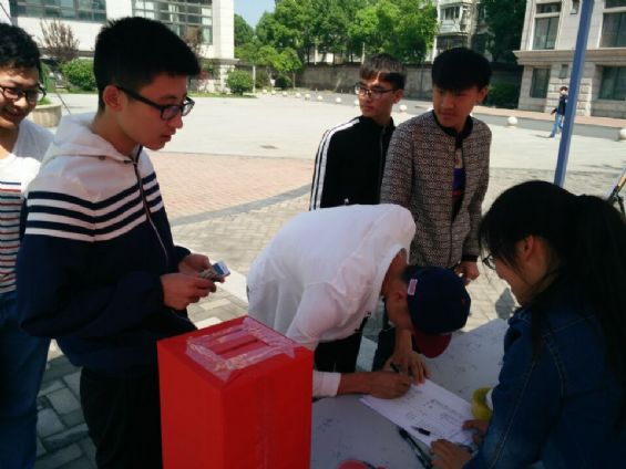 随着东方太阳的徐徐升起,一缕暖光普照大地,活动现场的人流量也渐渐地变得多了起来。前来募捐的同学络绎不绝,他们不约而同地把自己的爱心都投入到了那个显得格外引人瞩目的募捐箱中。十元,二十元,五十元,一百元……每颗爱心都代表着他们各自的祝福与寄托。