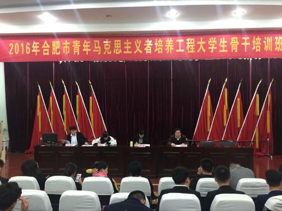 10月26日至29日,共青团合肥市委员会、合肥市学生联合会联合举办了2016年合肥市青年马克思主义者培养工程大学生骨干培训班, 来自院级学生组织的6名学生干部在团委副书记周晓艳的带领下参加了本次培训。