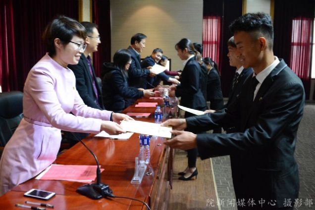 随后,参会领导为学生干部代表们颁发了聘书。聘书不仅仅体现了学院对于本届学生干部们的认可,更代表着一种沉甸甸的责任,代表着他们要秉承“服务于广大师生”这一根本思想,踏实做事。新一届的学生干部们纷纷表示一定不会辜负学院的重托,会努力尽到自己最大的责任,力求把工作做得更好。
