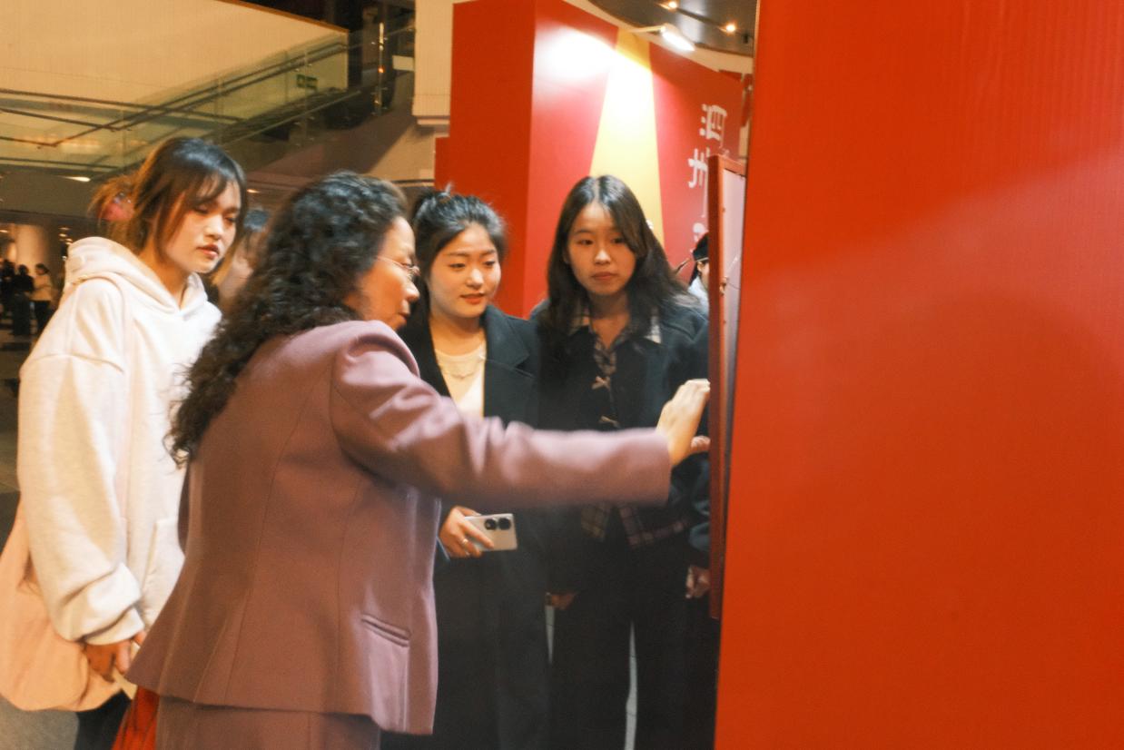 活动开始前,师生们进入大剧院大厅内被丰富多彩的场外非遗展示所吸引,在世界级非遗“春节”主题展区,以“蛇年春节”为主题还原的“年夜饭”场景温馨十足,围绕生肖“蛇”泥塑、剪纸、草编等非遗作品形态各异、活灵活现,引得同学们纷纷驻足欣赏,大家一边惊叹于民间艺人的精湛技艺,一边热烈讨论着这些作品所承载的传统文化内涵。非遗雅集区弥漫着浓厚的文化气息,茶道、香道、花艺、茶果子、古琴艺术、剪刻纸等非遗作品有序陈列,同学们在老师的带领下,围绕在一起,目光被这些精美作品牢牢吸引。在活动现场,有同学被媒体采访,谈一谈对非遗文化的认识以及对现场非遗物品的观赏感受。一位参与活动的同学激动地表示:“这次观赏活动让我大开眼界,以前对非遗文化的了解只停留在书本上,今天通过现场观看和亲手体验,才真正感受到非遗文化的魅力,非遗是中华民族的优秀传统文化、民族的骄傲和自豪,值得我们继续弘扬和传承下去。