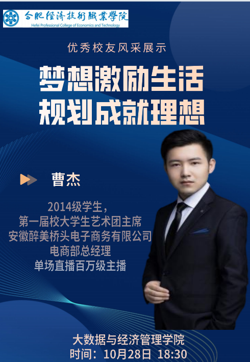 为帮助在校学生深入了解电商行业发展趋势,明晰职业规划路径,搭建校园与行业衔接的成长桥梁,10月29日晚,大数据与经济管理学院在J12举办优秀校友返校交流会。本次活动邀请了学校2014级优秀毕业生曹杰与电子商务专业的学生开展交流互动。学院领导、教师代表、数百名学生参加了此次活动。