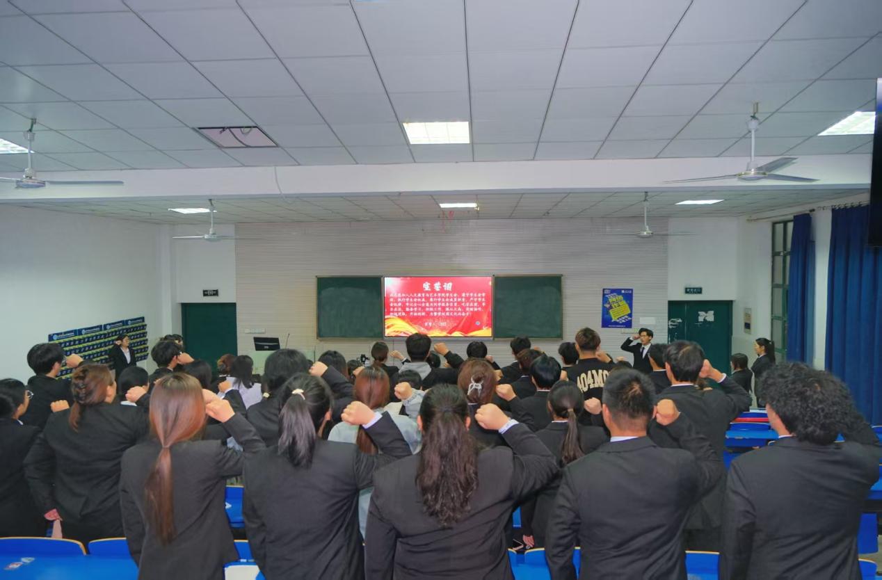 在宣誓环节,新任学生会主席身着正装、站姿挺拔,引领25级新成员高举右拳,共同庄严宣读誓词:“我志愿加入人艺学院……积极进取,开拓创新,为繁荣校园文化而奋斗!” 铿锵有力、整齐划一的誓言在阶梯教室中回荡,充分展现了新旧干事接力深耕人文艺术领域、共同促进学生发展的坚定信念。