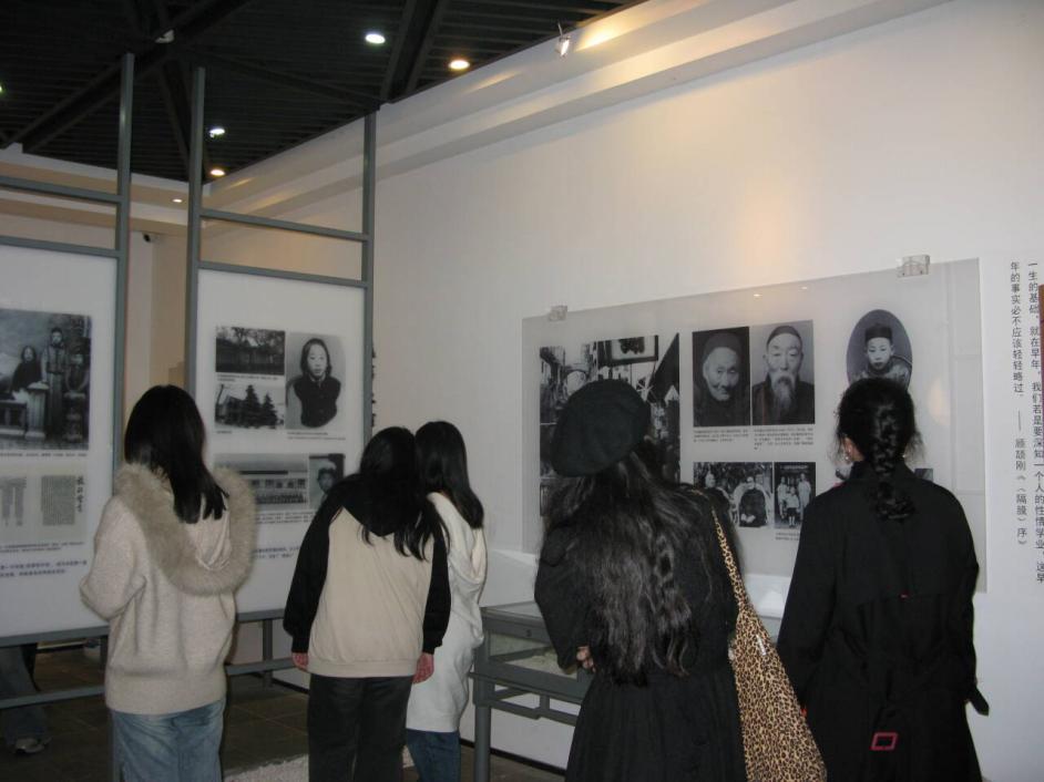 在叶圣陶纪念馆内,师生们认真参观了叶圣陶先生的生平事迹展,深入了解了他作为著名教育家、文学家和社会活动家的伟大贡献。纪念馆内陈列的手稿、书信、照片等珍贵史料,生动地展现了叶圣陶先生的教育热忱与严谨治学的精神。师生通过扫描展品二维码,观看叶圣陶先生的生平影像资料,结合专业课程进行现场讨论。学生们感慨道:“叶先生主编的《开明国语课本》从儿童视角出发设计内容,这种‘以学生为中心’的教育理念,对我们设计交互式学习产品极具启发意义。”