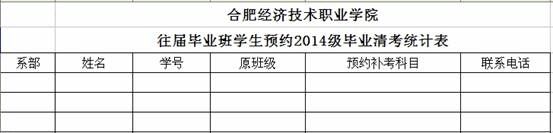 2.往届生若参加本次清考需要考前预约,由所在系负责通知,由系行政副主任按下表汇总(注明所在的系、姓名、学号、原班级、预约补考科目、联系电话),于11月7日下班前送到教务处,逾期不再安排。