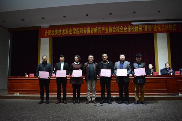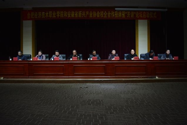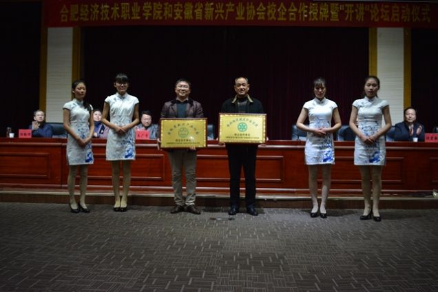 为积极响应“大众创业,万众创新”的号召,进一步加强创新创业教育,开展深层次校企合作,培养高端技能型人才,促进毕业生高质量就业创业。12月26日下午,安徽省新兴产业协会和ac米兰官方中文网站举行校企合作授牌暨“开讲”论坛启动仪式。安徽省新兴产业协会高级顾问储士明、会长张卫国,安徽省新龙川投资集团董事长奚广李、市场总监刘燕,ac米兰官方中文网站常务副院长马丰年,学院副院长杜俊林、沈宏毅,院长助理、招生就业处处长章六七等出席了会议。会议由章六七主持。
