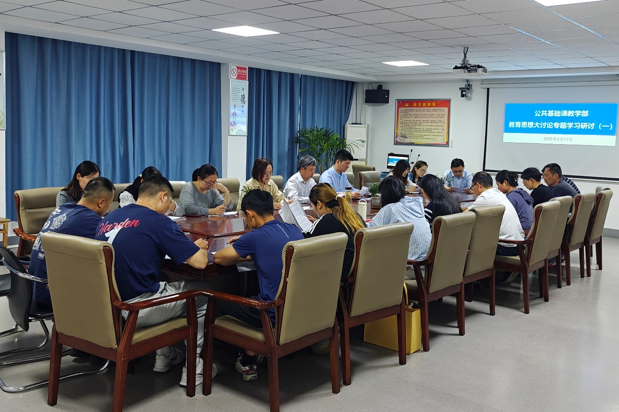 2025年4月17日,学院院长蒋德勤到公共基础课教学部调研并参加教育思想观念大讨论第一次集中学习活动。部门全体教师参加活动,活动由公共基础课教学部主任张开峰主持。