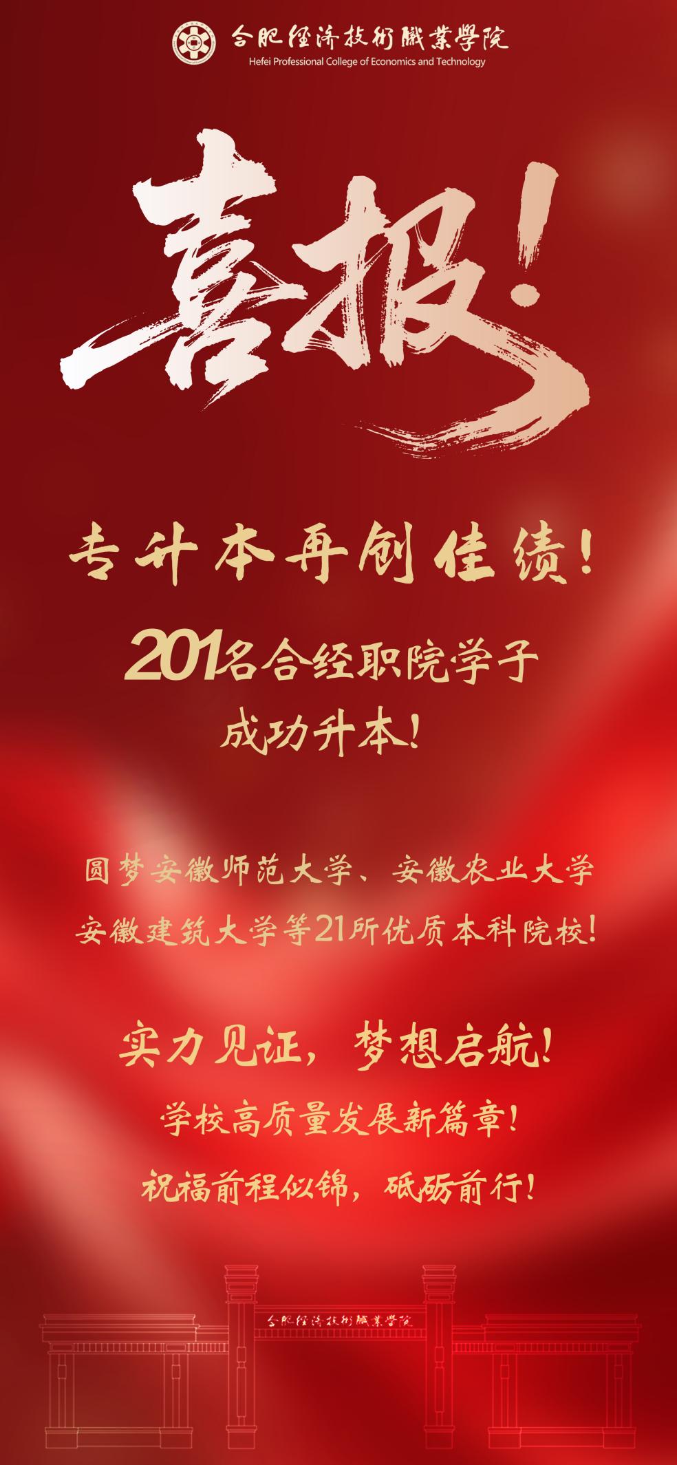 在此,我们向所有成功考上本科的合经职院学子致以最诚挚、最热烈的祝贺!希望他们能在新的学习征程中,继续保持奋斗的姿态,以饱满的热情和昂扬的斗志,探索学术的未知领域,书写属于自己的辉煌青春篇章。