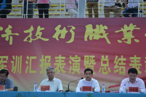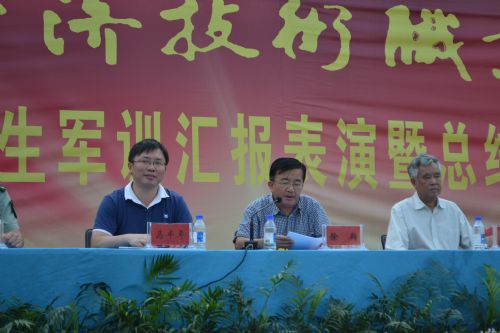 院党委书记、督导专员徐麟,院长昝连生教授,党委副书记、副院长马丰年,党委委员、副院长郭忠会,党委委员、院长助理侯进强,军训教官袁诗龙,党委委员、学生处长章六七,教务处长许克伟,全体承训教官以及各系部主要负责同志共同出席了汇报表演大会。大会由副院长马丰年同志主持。