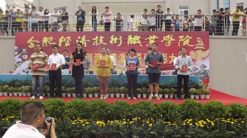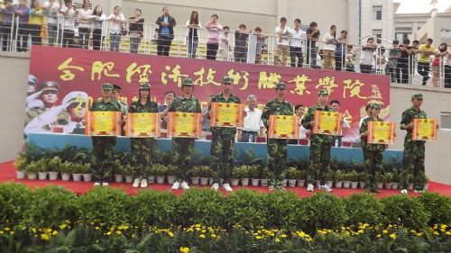 党委委员、副院长郭忠会宣读了2012级新生军训表彰决定,各位院领导对军训中表现突出的优秀个人、优秀连队、优秀教官、优秀辅导员等进行了颁奖并合影留念。