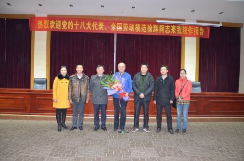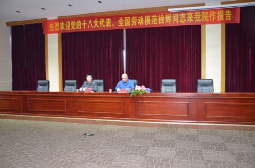 徐辉同志从“做好本职工作,诚实守信为民;安全大于天,设身处地为用户考虑;学习不放松,创新服务有恒心”等方面叙述了自己在平凡岗位上的不平凡的事迹。没有壮烈的故事、没有华丽的辞藻,但是他为人民所做的每一件小事以及他的睿智和朴实感染着报告厅的每一个人,现场不断响起雷鸣般的掌声。