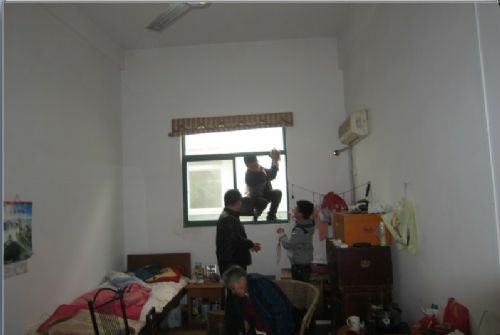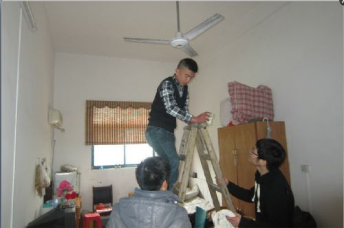 上午九点,一行人顺利到达蜀山湖老年公寓。院长孙海萍对我们进行了亲切的接待,并安排了此次义务劳动的具体事宜。随后同学们马上分组,各负其责,男生打水拖地、擦吊扇;女生擦洗窗户玻璃和楼梯扶手,大家积极认真。不到两个小时的打扫,敬老院焕然一新。