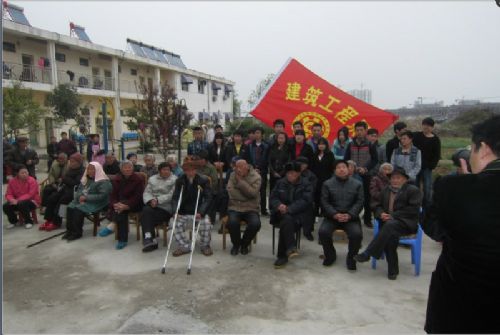 2013年3月24日上午建工系学生会干部开展了主题为“老人因我而健康”的志愿服务。学生会副主席胡静、纪检部部长程楠、副部长丁光龙、学习部部长邱山以及各部门优秀干事参加了此次活动。此外,学生会文宣部还邀请了部分学生代表前去表演。