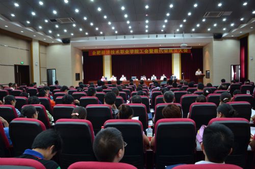 下午3时,在庄严的国歌声中,大会正式开始,第一阶段会议由党委副书记、常务副院长马丰年主持。党委书记、督导专员徐麟首先向大会作《合肥经济技术职业工会暨教代会筹备工作报告》。报告全面汇报了我院工会和教代会筹备工作领导小组建立、对教职员工的宣传教育、会员发展、代表选举、工会委员会候选人名单、教代会执委会候选人名单产生等工作的开展情况。报告认为,经过认真的筹备,我院工会暨教代会已具备了正式召开成立大会的条件。