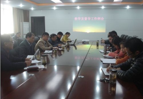 会议由教务处许克维处长主持,会议有六项内容:一、教务处副处长张开峰就《学生教学信息员制度(征求意见稿)》进行说明。二、学院教学督导组组长唐世杰对前一段时间开展的教案和备课笔记检查情况进行通报。三、教务处副处长樊卓娅对前一阶段教学大纲撰写完成情况进行通报,并对后续工作的开展提出要求。四、教务处处长许克维就《教师教学质量考核办法(征求意见稿)》进行说明,与会人员对“征求意见稿”进行了讨论,提出了修改意见和建设性的建议。五、常务副院长马丰年对《学院2013~2014学年度工作要点》中的任务做了具体安排,并指出了近期学院实验实训室、机房在使用和管理方面存在的问题,并提出了整改要求。最后党委书记徐麟对当前学院的教学工作提出了指导性意见。徐书记要求大家要进一步提高认识,明确目标,认真做好学生教学信息员队伍建设和教学大纲的编写工作,进一步加强机制建设和过程管理,不断提高教育教学质量和办学水平。