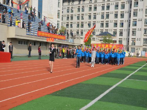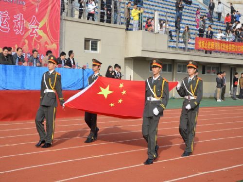 首先,包括国旗方队、校旗方队、校训方队和鲜花方队在内的十四个色彩斑斓的方队迈着整齐的步伐依次进入了会场,接受了院领导的检阅。庄严而肃穆的升旗仪式后,院党委副书记、常务副院长马丰年对本次运动会作了致辞,他强调我院学生只有拥有健康的体魄,才能全面发展。同时,他指出本次运动会的开办将会积极地推动和促进我院的体育事业发展。他还要求参赛运动员们在比赛中要本着“友谊第一,比赛第二”的信念。随后,裁判员代表刘方和运动员代表苏涛分别代表裁判员和运动员进行了宣誓。最后,主持人侯进强宣布本届运动会开幕,各项比赛正式开展。