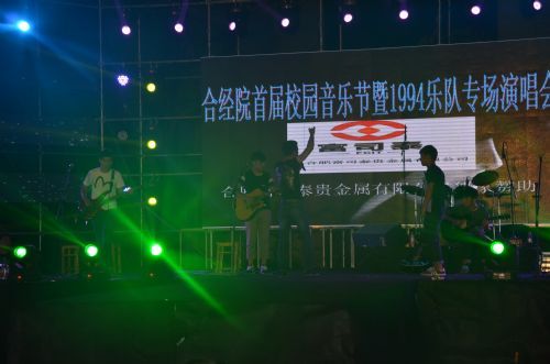 1994乐队是由我院一群爱音乐、爱摇滚的在校学生组建而成,也是我院的第一支学生乐队。成员包括:主唱魏巍、鼓手陈可、主音吉他周天、节奏吉他程晨、贝斯朱美耐、经纪人占剑飞。本次演唱会是乐队成员一直的梦想,他们为此付出了辛勤的工作和精密的准备。演出结束后,鼓手陈可代表乐队说出了内心的感触:“一路走来,有很多的艰辛和汗水,但为了梦想,一切的汗水和眼泪都是值得的,太阳升起,斗志不息。看到同学们为我们的演出而呐喊鼓掌,瞬间感觉所有的付出都是值得的。”
