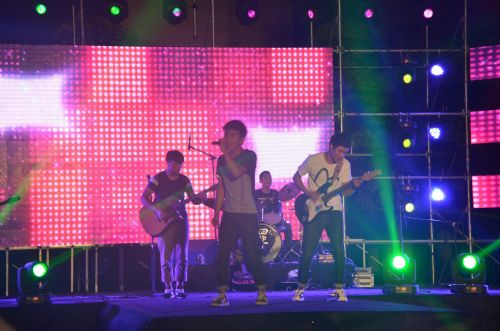 我院的陈怀乐和胡海,通用学院的徐文静这些校园优秀歌手也前来助阵演唱,高亢激烈的《拯救》、低沉厚重的《等待》淋漓尽致地展现了他们深厚的演唱功底,充分体现了校园音乐节内容丰富,风格多样的特点。本次演唱会还设置了礼品互动环节,更将现场氛围掀起一轮又一轮的高潮。21时,演唱会在集体合唱《朋友》中圆满落下帷幕。