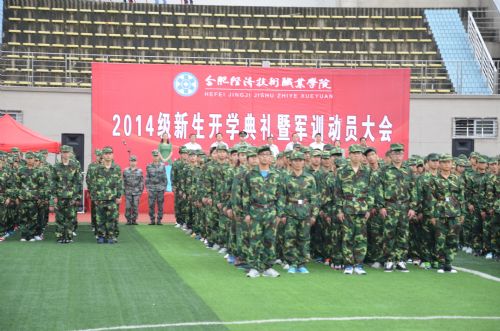 伴随着庄严的《中华人民共和国国歌》,学院2014级新生军训动员大会在体育场拉开了帷幕。