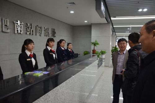 高铁南站综管办主任王延同志对我院领导的到访表示热烈欢迎。在简单介绍了目前高铁南站的一些情况后,他引导马院长一行对我院在高铁南站服务的志愿者们进行了走访谈话。走访中,我院的志愿者们对于院领导的到来感到十分激动,争先主动地向领导们介绍了各自志愿服务岗位的工作情况。在认真听取了同学们的讲述后,领导们也对本批志愿者出了一些需要注意的地方。领导们表示,第一,身处校外,个人的安全问题一定要放在首位;第二,本次的志愿服务工作对大家是一次非常有意义的锻炼,希望大家能坚持下去;最后,领导们还提醒大家,学院一直是大家的坚强后盾,如果遇到困难,无论是生活上的还是工作上的,都可以随时向我们的带队老师反映,也可以直接向学院反映,学院一定会及时解决。上午11时,此次的走访慰问活动圆满结束。