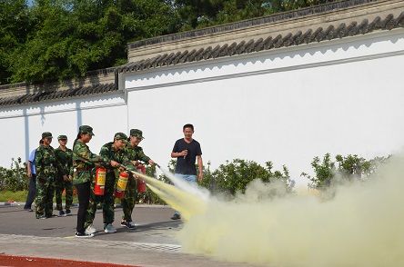下午14时30分,消防演练的警报哨声吹响,同学们有的用湿毛巾捂住口鼻,有的用帽子遮住面部,在军训教官和辅导员的指挥下快速、有序地从逃生口撤离到足球场。稍事整顿后,学院保卫科工作人员又向同学们讲授了灭火器的正确使用方法,并做了现场消防指导与灭火演示,部分新生代表也上前体验了一把。