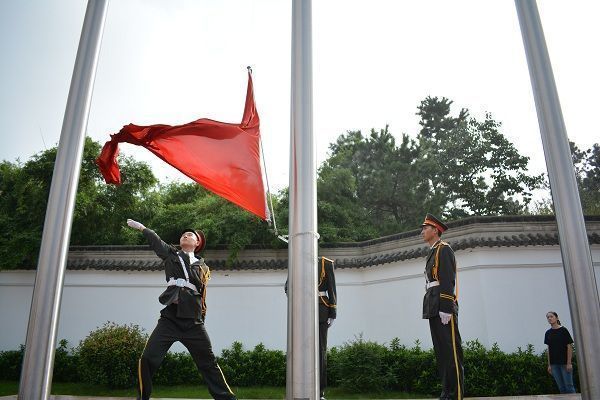 沈宏毅代表学院对2017级新生表示热烈的欢迎并宣布典礼正式开始!五星红旗在庄严的国歌声中缓缓升起。礼毕后,教师代表高翠进行发言。她向新生表示了热烈的欢迎,并对新生提出了几点期望:一是要认真的学习专业知识,并能广泛的学习各种技能,二是要学会做事与做人,要能与周围的人很好的相处,最后还需要学会感恩,因为只有学会感恩才能收获更多。接着辅导员代表陈悦上台发言。她表示作为学院辅导员队伍的一份子,也是和学生接触最多的人之一,有两点建议希望新生们能够采纳:千万不要认为进入大学就可以放松了;大学里面要学会归零和重新开始。最后,她代表辅导员庄重承诺:“我们将认真践行‘诚信、自信、有志、有为’的合经院校训,以自己的全部知识和热情助推每一位同学的成长成才,并在教学相长的过程中,也向同学们学习,与大家共同进步。”