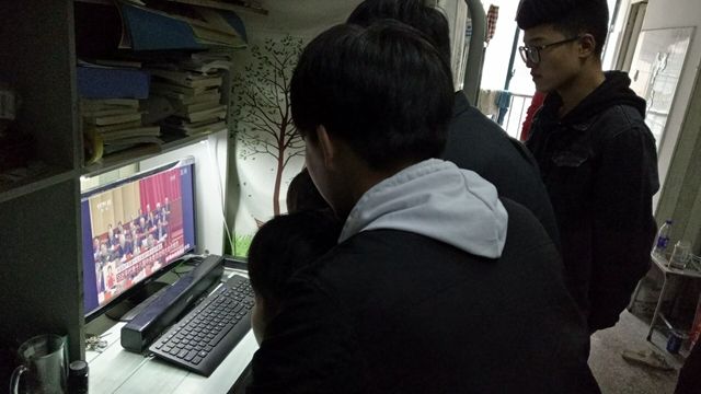学院三楼会议室,在三位团委老师的陪同下,一批学生代表认真观看大会