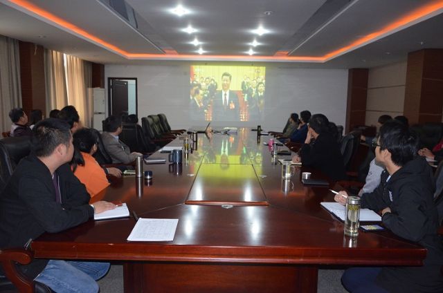 学院集中收看的主会场设在行政楼二楼会议室,党政领导班子成员、机关职能部门主要负责人、各党支部书记等在主会场集中收看。