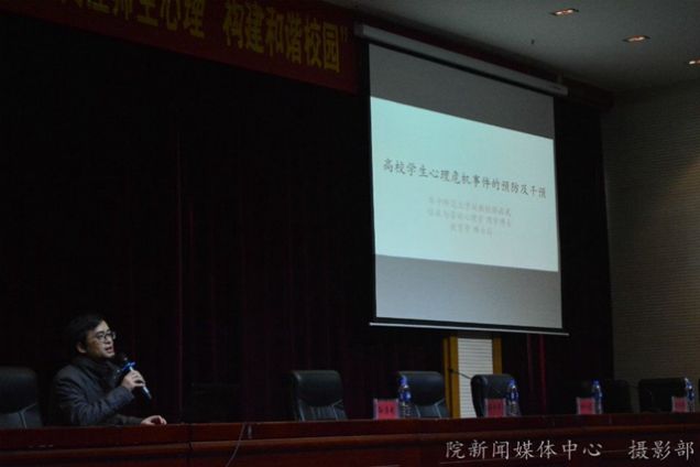 北京入千境心理咨询服务有限公司董事长柏一丹女士来到讲座现场,党委副书记常务副院长马丰年为培训做重要致辞,学院专兼职辅导员教师、主要行政干部及部分学生干部代表参加了本次培训。本次主讲嘉宾孙启武教授为华中师范大学应用心理学(临床心理咨询与治疗)博士、教育学院博士后、心理健康教育中心副教授、硕士生导师,学术根底扎实,视野开阔,实践经验丰富,对教育中存在的心理问题和心理现象有着全面系统深刻细致的理解,从学生心理危机干预到教师的幸福人生有着独到的分析和认识,让老师和同学们认识到心理健康对于个人成长成才的重要意义,也为学院的心理健康教育工作提供了更多建设性的意见和建议。