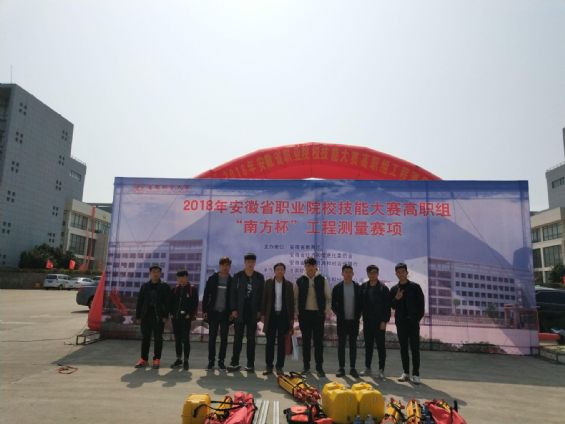 在由省教育厅等部门联合举办,淮南联合大学承办的2018年安徽省职业院校工程测量技能大赛中,由我院建筑工程系常开纯、陈志鹏、徐磊、王家卫四位学生组成的团队,在强手如林的竞赛场上,不畏强手,沉着比赛,奋力拼搏,在与安徽省其他高职院校的53支参赛队伍的激烈角逐中脱颖而出取得好成绩,问鼎奖牌。