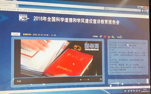 学院组织收看18年全国科学道德和学风建设宣讲教育报告会
