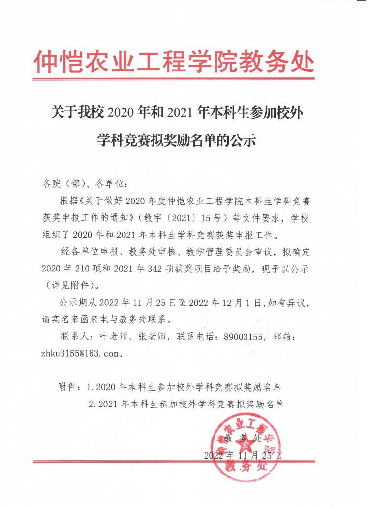 关于欧冠2020年和2021年本科生参加校外学科竞赛拟获奖名单的公示